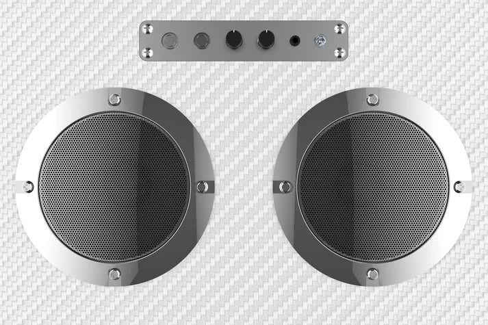 • Dual 25W speakers deliver powerful, crisp sound. Fine-tune your experience with two internal knobs to adjust bass and treble levels.